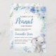 Célébrez votre Petite cacahuète avec cette douce et élégante Invitation Baby shower d'éléphant garçon. Doté d’un adorable petit éléphant entouré de fleurs bleues et de verdure, ce design apporte un mélange parfait de charme et de sophistication à la journée spéciale de votre bébé garçon. Parfait pour les baby showers fleuris dans la jungle ou le safari, cet invitation est une belle façon de réunir amis et famille pour accueillir votre petit. BBS482