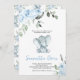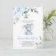 Célébrez l'arrivée prochaine de votre petite cacahuète avec cette adorable Invitation Baby shower d'éléphant garçon. Doté d'un petit éléphant doux aux fleurs bleues douces et d'une végétation luxuriante, ce design charmant est parfait pour une douche pour bébé avec une touche douce et chaleureuse. Invitation aimait ceux qui se joignent à la joie avec un design aussi doux et aimable que votre petit ! BBS259