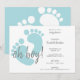 Élégantes et simples, ces invitations sont une excellente façon de célébrer la future maman. Le design comporte un ensemble bleu doux de pieds bébé sur l'avant avec du texte gris pour s'adapter à tous les détails du baby shower. Le dos est assorti à un arrière - plan bleu assorti à des empreintes de bébé blanches.