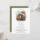Invitation baby shower de champignons enchantés forêt de bois de bois. Champignons géants magiques, animaux de la forêt, arbres, invitation à l'aquarelle. Vert au dos de l'invitation. Vous pouvez acheter cette invitation en version imprimée, en téléchargement numérique, ou les deux.