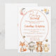 L'invitation baby shower en milieu forestier présente un beau design à l'aquarelle avec un renard, un mouton, un ours et un petit caneton. Ils sont rassemblés dans un jardin de fleurs sauvages et deux petits bourdons doux récoltent le nectar. La lune et quelques étoiles sont dans le ciel. Personnalisez l'invitation avec toutes vos informations grâce au modèle facile à utiliser fourni.