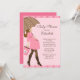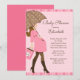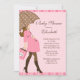 Commencez votre baby shower doux de bébé outre de la droite avec notre invitation moderne et à la mode de baby shower comportant une maman enceinte de brune élégante tenant un parapluie de pois et des sacs à provisions bruns et roses réglés sur un arrière - plan rose de pois. Invitation mignon pour le l'un ou l'autre une douche de bébé. Personnalisez juste avec votre information et vous êtes tous placez pour aller ! Articles assortis comprenant l'affranchissement de baby shower, autocollants de faveur, merci vous carde et remercie que les autocollants sont également disponibles dans notre magasin. illustrations de ©JWI