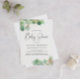 Cette élégante invitation au baby shower bébé, neutre pour les femmes, présente des aquarelles de verdure d'eucalyptus aux accents dorés, et un "Baby shower" écrit dans un script contemporain élégant.