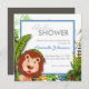 Un invitation fait sur commande de baby shower pour comporter le lion de jungle et l'arbre conçoivent