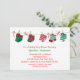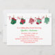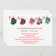 Une mignonne invitation de baby shower de vacances sans distinction de sexe avec des chaussettes vertes et rouges dans divers motifs de Noël accrochés à des étoffes avec des arcs et des sucres de canne. (graphisme© Cajoline-Scrap)
