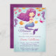 Cute Aquarelle Sirène Fille Bébé Douche Invitations - Bleu Violet