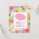 Une invitation à la baby shower d'une fille illustrant un parapluie rose sur un arrière - plan de fleurs aux couleurs pastel. Personnalisez le texte en arrière avec les détails de votre occasion.