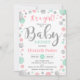 Invitation Baby shower fille - Monnaie verte rose et points d'argent Faux