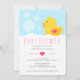 C'est une fille ! Prévoyez-vous un bain à bulles ou un baby shower à thème canard ? L'Invitation de Baby shower de fille en caoutchouc Ducky est un choix adorable pour les baby showers pour les filles. Elle présente un canard jaune doux avec un coeur rose sur son aile entouré de bulles de bain. Cette invitation 5x7 contribuera à donner le ton à une célébration très spéciale. N'oubliez pas de faire cravate au thème de la fête et de coordonner les produits conçus par Enchantfancy Design Company.