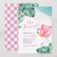 Invitation Baby shower Flamant rose Feuille tropical