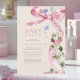 Elégant Bow Ribbon Fleur sauvage rose Baby shower Invitation Rose Floral Bow Fleur sauvage Baby shower Cette élégante invitation présente un bel arc rose, des fleurs sauvages délicats d'aquarelle et une typographie classique.