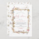 Une jolie invitation baby shower fleur sauvage avec un cadre doré avec des fleurs sauvages d'aquarelle et une police de calligraphie moderne corail. Les fonctions inverses ont un motif de fleurs sauvages d'aquarelle.