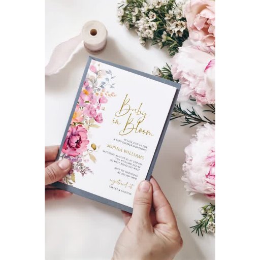 Invitation Baby shower Fleur sauvage violet