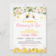 Cette invitation présente de mignonnes bees bourdonnantes avec de la verdure et des faux confettis et des peignes de miel en feuille d'or.