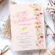 Un petit fleur sauvage est en route ! Joli baby shower floral fleur sauvage printemps avec joli tableau d'aquarelle de fleurs rose et jaune, à la main et à la belle peinture vif et vive, avec une police de caractères élégante et moderne, avec feuillage bohème vert sur rose pastel. Idéal pour le printemps, été extérieur jardin baby shower fête.