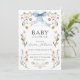 Baby shower Floral Frame Blue Bow Invitation.