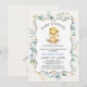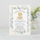 Baby shower Floral Jaune moderne Invitation Fleurs sauvages et cadre vague lion à thème invitation baby shower avec bébé lion et couronne, cadre ondulé et la plupart du bleu fleur sauvage arrangement.