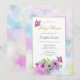 Une invitation au baby shower floral bleu et rose avec une bordure d'aquarelle peinte d'or et de pastel.
