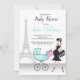 Invitation à thème Paris, élégante et stylisée. Tour Eiffel visuel et couleurs génériques font un merveilleux thème de Baby shower pour votre célébration.