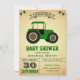 Éblouissez vos invités avec cet invitation baby shower à thème cool tracteur avec un joli tracteur vert avec une typographie dynamique sur un arrière - plan parchemin vintage. Ajoutez simplement les détails de votre événement sur ce modèle facile à utiliser pour en faire une invitation unique. Retournez la carte pour révéler une texture rustique en bois de grange au dos de la carte.