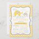 Belle invitation au baby shower d'éléphant en jaune et gris moderne. L'élégant design comprend une douce mère et un couple d'éléphants, un motif chevron et des pois. Invitation parfait pour un baby shower neutre pour les femmes.