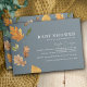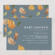 Des invitations simples et modernes à la douche pour bébé avec un design excentré et des illustrations aquarelles de feuilles en chute. Le texte est entièrement modifiable ; le texte de titre peut être changé de "BABY SHOWER" à "IT'S A BOY", etc. ou tout court vers. Arrière - plan bleu foncé contrastant.