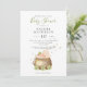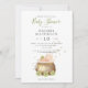 Invitation baby shower avec un bébé aquarelle dormant sur un pot en or.