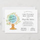 Un baby shower par mail invitation parfaite pour ceux qui vivent loin des êtres chers. Un globe aquarelle sur le stand avec la citation "Laissez l'aventure commencer!" entouré de branches d'eucalyptus vert est incorporé dans ce magnifique design, donnant à l'invitation une sensation amusante, mais vintage.