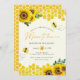 Invitation neutre et ludique "Mama to bee" pour baby shower avec un design de tournesol et de nid d'abeille.