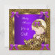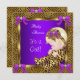 Invitation Baby shower mignon bébé fille léopard violet or 3