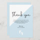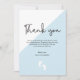 Simple Baby shower moderne Carte de remerciements : Gratitude avec style Votre bébé est en route, et il est temps d'express vos remerciements sincères à ceux qui ont partagé dans votre joie. Notre Carte de remerciements de Baby shower Simple Moderne vous permet de le faire avec élégance et style. Simplicité gracieuse : Ce carte de remerciements présente un design moderne et minimaliste qui en dit long par sa simplicité. Les touches bleues douces et les détails en diagonale créent un cadre élégant pour votre message de gratitude. Élégante typographie : Votre message de remerciement est présenté avec un design de typographie chic et sophistiqué. C'est un mélange d'esthétique moderne et de grâce intemporelle, reflétant l'excitation de votre arrivée imminente. Illustration des pieds de bébé : Ajoutant une couche supplémentaire de charme, cette carte présente d'adorables empreintes de bébé. Ces pieds minuscules et délicats représentent le voyage que votre bébé est sur le point de commencer, ce qui en fait la touche parfaite pour une douche pour bébé garçon. Gratitude personnalisée : Customisez le message sur cette carte pour exprimer vos sentiments d'appréciation. Faites savoir à vos invités spéciaux à quel point leur présence et leurs cadeaux réfléchis vous sont utiles pendant que vous vous préparez à l'arrivée de votre bébé garçon. Correspondance de votre thème : Le thème bleu peut être adapté à votre thème de baby shower spécifique à l'aide de l'outil "customiser plus loin". Si vous avez des questions ou avez besoin d'aide, n'hésitez pas à nous contacter à l'adresse info@lddesignloft.com . Félicitations ! : En plus d'exprimer vos remerciements, cette carte est aussi une très sincère félicitations à vos invités. C'est une célébration de l'amour et de la joie qui entourent l'ajout à venir à votre famille. Conception réfléchie : Nos cartes sont conçues avec soin et attention aux détails. Nous comprenons la signification de ce moment, et nous voulons que votre gratitude soit magnifiquement présentée. Matériaux de qualité : Conçus avec des matériaux de haute qualité, nos cartes offrent à la fois une durabilité et une sensation de luxe. Ils sont la façon parfaite de transmettre votre appréciation avec une touche d'élégance.