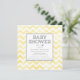 Cette invitation au baby shower design et moderne présente un motif chevron couleur aquarelle en jaune et un joli tableau de sécurité.
