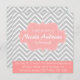 arrière - plan motif de chevrons gris et blanc élégant et élégant. Cadre en crochet rose avec effets de point pour indiquer le nom du bébé. Cette carte d'invitation attrayante aux couleurs pastel est idéale pour quiconque planifie un baby shower ou a besoin d'un faire-part pour l'arrivée d'un nouveau-né. Le design convient aux petites filles. La carte d'invitation peut être facilement customisée aux détails de votre fête. Dessiné par Doodle rouillé.