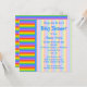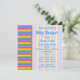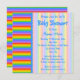 Cette invitation personnalisée au baby shower pourrait convenir si le bébé doit être un garçon ou une fille. Un motif rayé aux couleurs arc-en-ciel, avec des rayures pâles derrière l'écriture. Le texte est en bleu et peut être personnalisé pour créer une invitation personnalisée. Un design ludique et coloré.