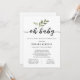 Un baby shower par courrier est parfait pour ceux qui vivent loin des êtres chers, mais veulent toujours doucher les parents d'être avec amour et des cadeaux pour se préparer à l'arrivée de leur bébé. Cette douche longue distance par l’invitation par la poste comprend "oh bébé" en calligraphie avec une végétation simple et le poème de demande "Il est difficile de vivre si loin quand Baby est en route. Rassembler des êtres chers peut être si difficile Donc si vous voulez, s'il vous plaît envoyez votre cadeau ou carte. Et quand ils arriveront jour après jour, ils sentiront tout votre amour de loin." Customisez votre libellé. Cliquez sur "Customiser plus loin" pour modifier le style, la taille et la couleur de la police si vous le souhaitez.
