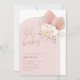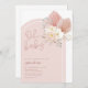 Fêtez le grand public grâce à cette invitation au baby shower d'arc fleuri moderne et élégant, avec son arc rose moelleux recouvert d'un bouquet fleuri de fleurs blanches et roses rousses, sa verdure séchée et ses feuilles de palmiers roses.
