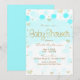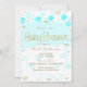 Invitation Baby Shower Or & Cœurs Bleu Or Blanc Points