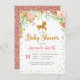 Baby shower du Carousel Horse invitation avec de beaux roses floraux d'or et confettis d'or.
