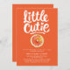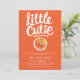 Baby shower orange Little Cutie White Text. Disponible numériquement et imprimé. Little Cutie est dans un ensemble de script moderne. Personnalisez facilement le reste des mots au besoin.