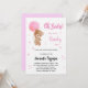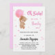 Invitation Baby shower ours en peluche fille ballon rose luxe