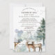 Cette invitation pour baby shower met en vedette des pins, des montagnes, des cerfs et un fond en bois rustique. Créée pour une "baby shower par la poste" pour garçon, cette invitation est sûre d'impressionner vos invités. Parfaite pour quand une fête est impossible.