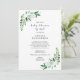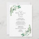 Longue distance Baby shower par mail invitation avec des branches de verdure aquarelle et des fleurs blanches qui balaient les coins du design. Personnalisez avec vos informations ou cliquez sur "Cliquez pour customiser plus loin" pour modifier les styles, la taille et les couleurs des polices.