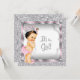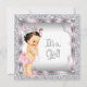 Adorable perles douces rose et argent invitation baby shower princesse avec petite fille mignonne sur un bel arrière - plan parties scintillant argent et rose. Cette élégante invitation au baby shower princesse noir et gris est facilement customisée pour votre événement. Vous pouvez supprimer le texte et ajouter le vôtre dans le style et la couleur de police de votre choix.