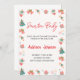 C'est une charmante invitation à baby shower à thème "Père Noël Baby" avec un arrière - plan blanc aux décorations festives de Noël rose corail et vert menthe (arbres, cloches, sucres de canne et ornements) disposées en bordure. L'invitation comprend des détails essentiels pour un baby shower de décembre à New York, avec le nom de la mère à être affiché dans un script de corail ludique, créant un mélange parfait de l'esprit de fête et de célébration de bébé.
