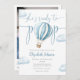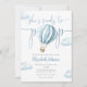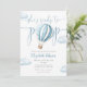 Cette charmante invitation au baby shower comporte une jolie montgolfière bleue et des nuages, ainsi qu'une élégante typographie de script. Avec votre code QR de registre et photo spéciale au verso. Conçu par Thisisnotme©