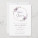Invitation au Baby shower pourpre. Douce, rêveuse et romantique, cette invitation baby shower élégante présente une magnifique couronne d'aquarelle de feuilles et de fleurs peintes à la main dans des tons monochromatiques de violet, prune, et roses douces avec script et texte violet assortis. Au verso de l'invitation figurait un motif fantaisiste. Trouvez les objets correspondants dans la collection Elegant Purple Botanical Mariage Collection.