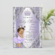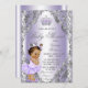 Baby shower violet et argenté avec adorable petite fille ethnique portant un joli tutu violet lavande et couronne sur un arrière - plan lavande et tourbillon argent. Cette jolie invitation à la lavande et au baby shower argenté est facilement customisée pour votre événement en ajoutant simplement les détails de votre événement.