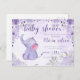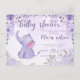 invitation, baby shower, purple, elephant, flowers, cute elephant, animal, modern, simple, girl