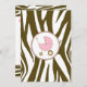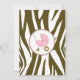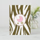 Une invitation avec une bordure brune d'impression zèbre au-dessus et au-dessous avec un cadre rose pâle. Personnalisez le texte de police de tango et de lettre noire marron et rose avec les détails de votre événement. A l'opposé, on trouve une impression zébrée solide avec un chariot de bébé rose à l'intérieur d'un cadre en forme de cercle.