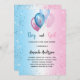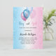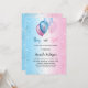Pour un baby shower pour un bébé garçon et bébé fille. Arrière - plan bleu blanc et rose. Décoré de parties scintillant et bleu, ballons roses et blancs et poussière de parties scintillant. Personnalisez et ajoutez le nom de la future maman et les détails de la fête. Le nom et le texte : Garçon ou Fille sont écrits avec un script de style manuscrit